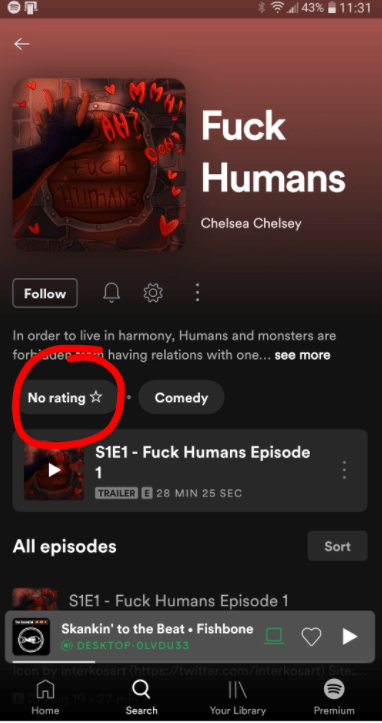 You can now rate podcasts on Spotify. So head on over and show Fuckhumans and Monstica some love.