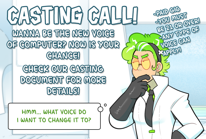 We’re recasting for the role of Computer in Gummy and The Doctor.
